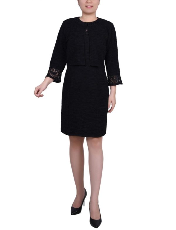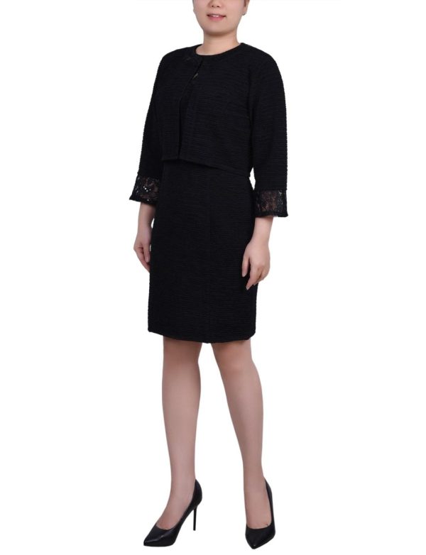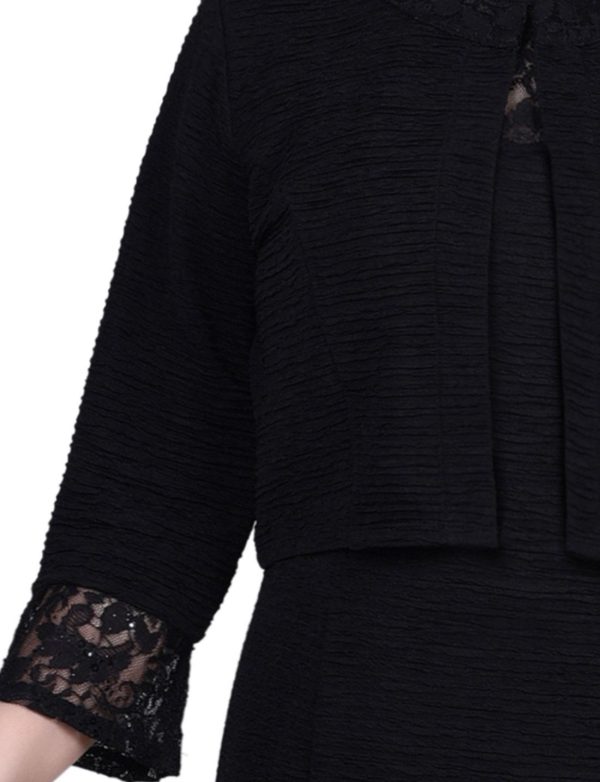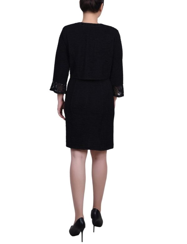 A dress set that looks amazing, with fashionable lace and sequin details for an elegant touch. Both pieces feature beautiful silhouettes that flatter your figure, plus 3/4 bell sleeves and a sweetheart neckline for a delightful design.