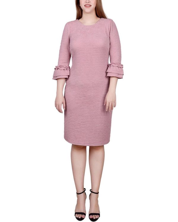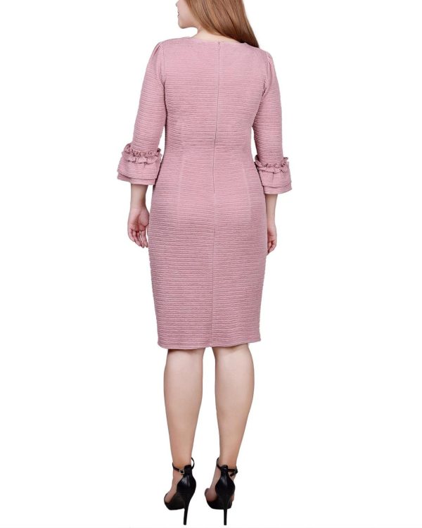 Create a real wow this season in this textured knit ruffle sleeve dress.