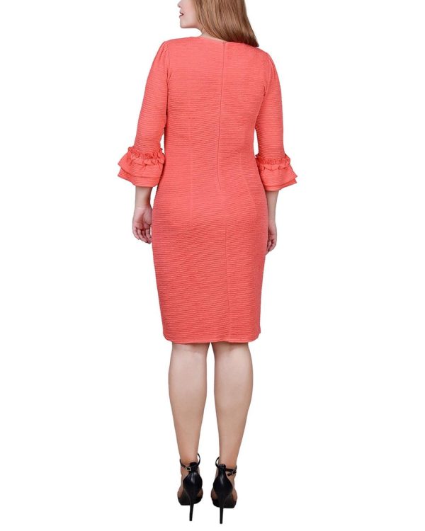 Create a real wow this season in this textured knit ruffle sleeve dress.