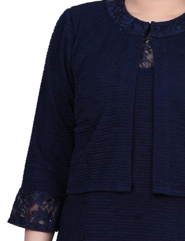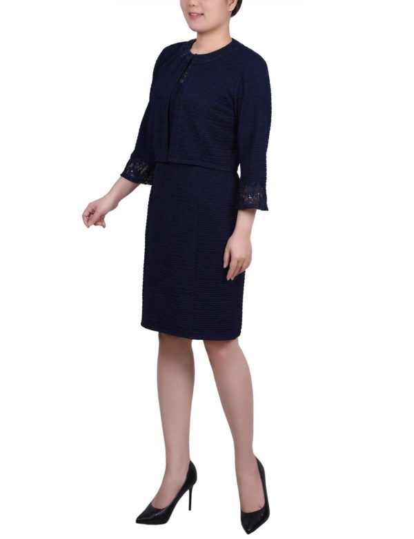 A dress set that looks amazing, with fashionable lace and sequin details for an elegant touch. Both pieces feature beautiful silhouettes that flatter your figure, plus 3/4 bell sleeves and a sweetheart neckline for a delightful design.