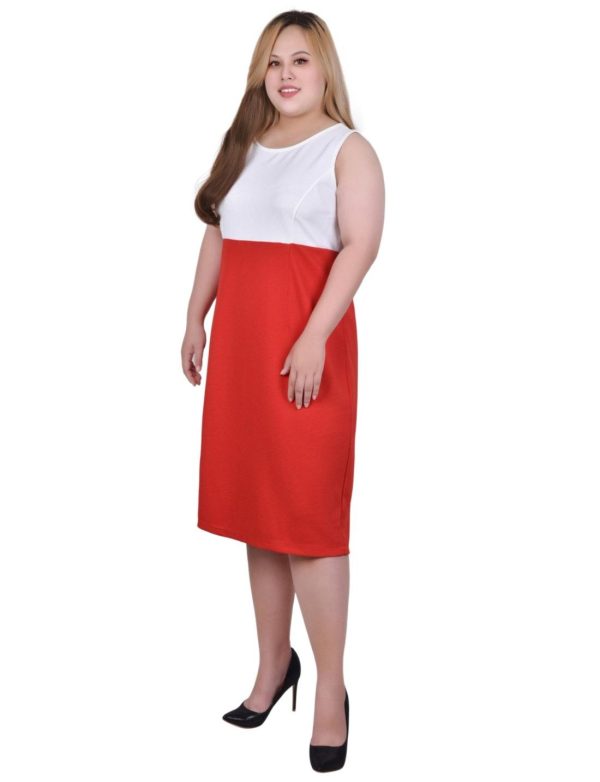 With bold contrast piping details, this color-blocked dress is layered under a 3/4 sleeve jacket, perfect for any work day.