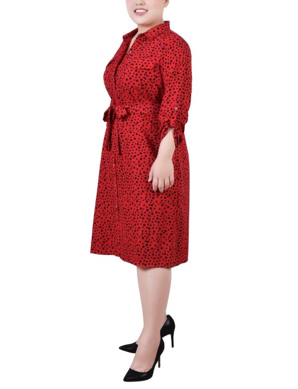You’ll always be in style with this classic shirt-dress with its full button front and self belt.