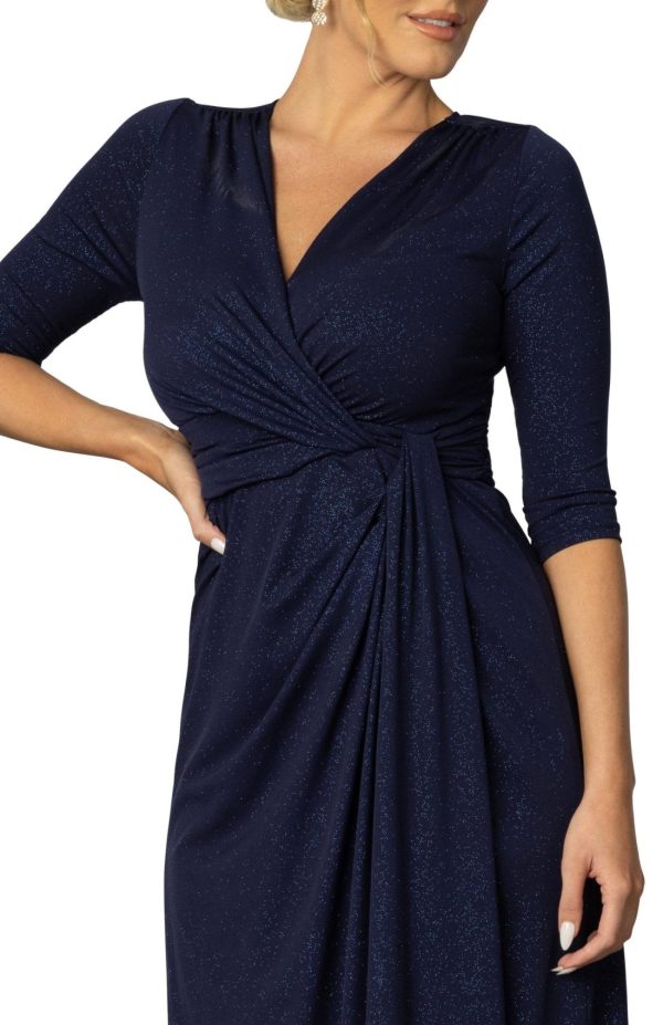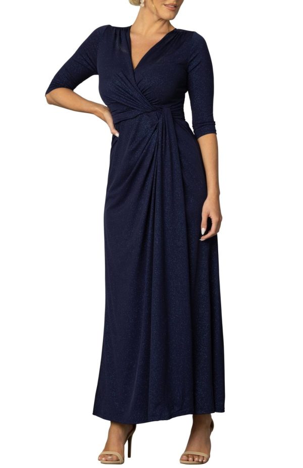 The Romanced by Moonlight Long Gown is an elegant floor-length dress with cinching at the waist, a gracefully sweeping skirt, and classic 3/4 length sleeves. The Midnight Star and Evening Star colors have a glitter-treated fabric that catches the light. Available in regular and plus sizes.
