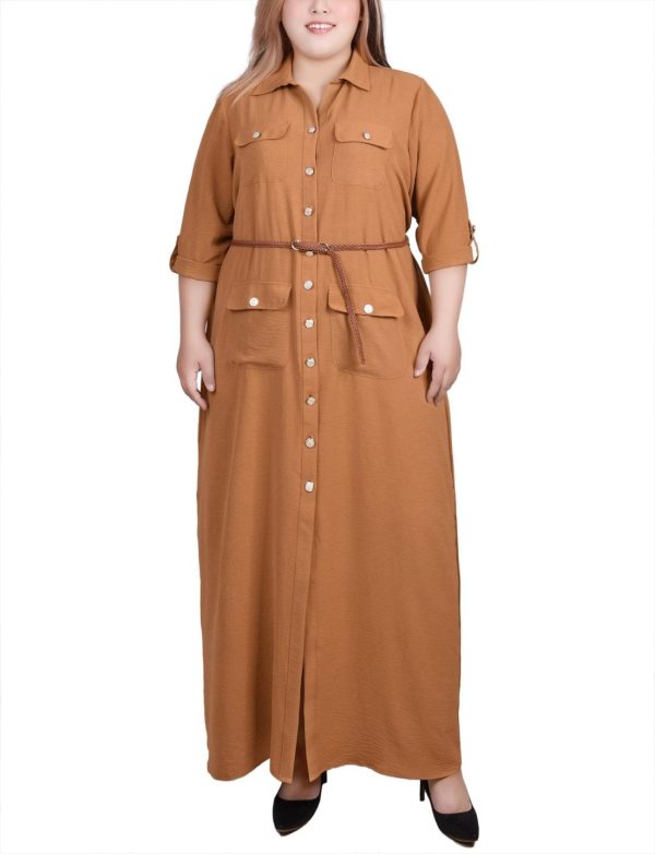 Feel effortlessly stylish in this camp-style long dress with it’s self belt and pockets.
