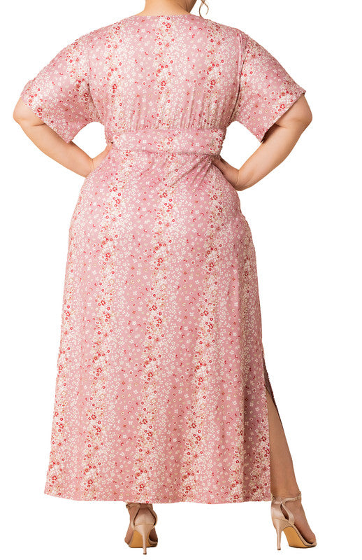 The Vienna Maxi Dress is a curve-flattering long dress detailed with an empire waist, V-neck, flowy A-line skirt, and side slits. This stretch jersey dress is a versatile and can be worn casual or dressed up for a semi-formal event and wedding guest dress. Available in regular and plus sizes.