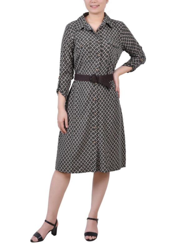 You’ll always be in style with this classic shirt-dress with its full button front and belt.