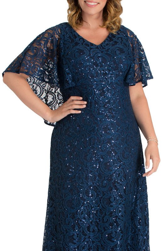You’ll look absolutely regal in our plus size Celestial Cape Sleeve Gown. Designed with sequin lace, you’ll light up every room you enter.
