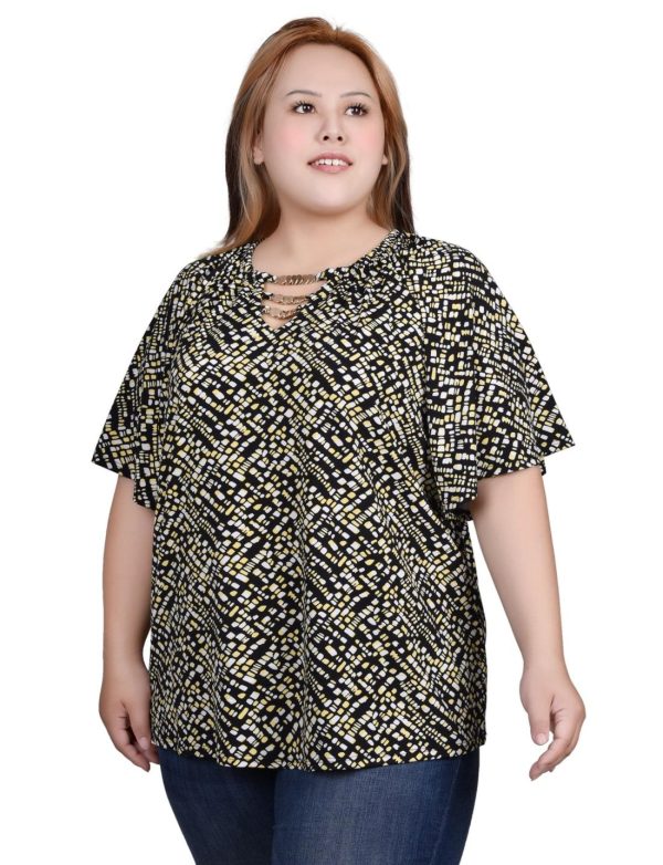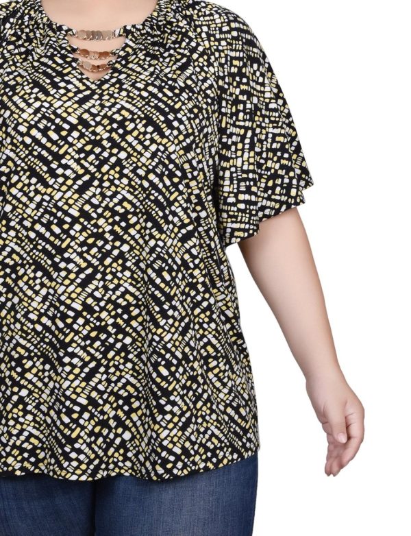 It’s all about the details on this raglan sleeve top from NY Collection. The chain details highlight the neckline.