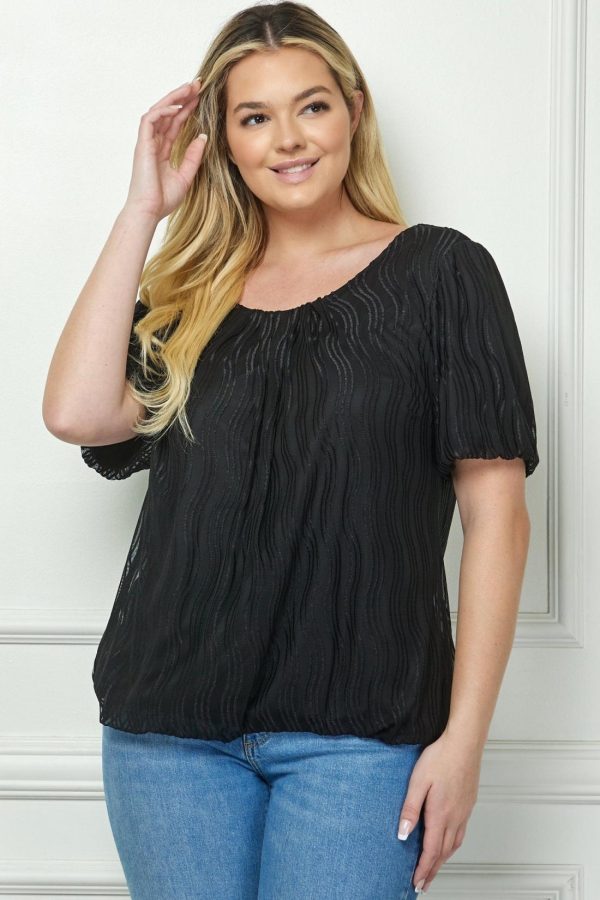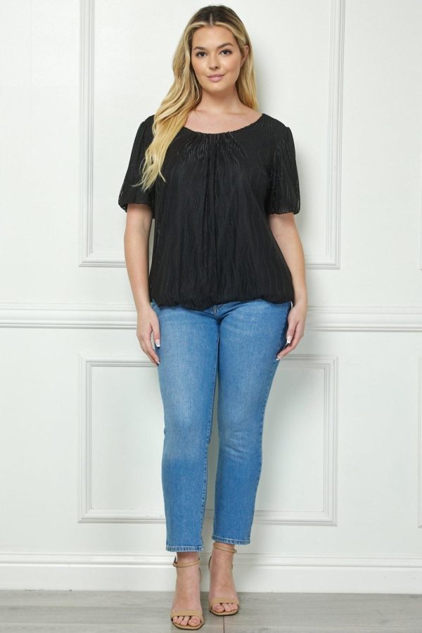 Dressbarn Tops | Women Short Puff Sleeve Scoop Neck Bubble Blouse Plus