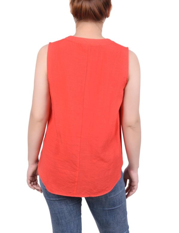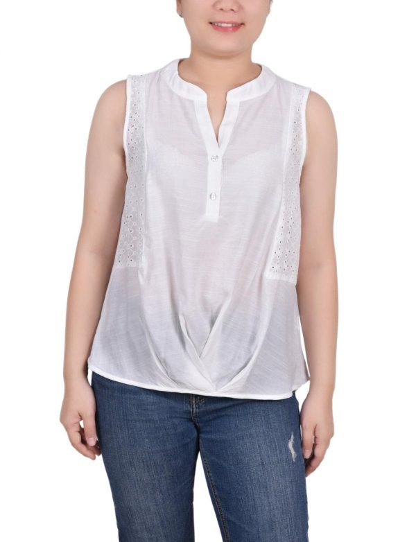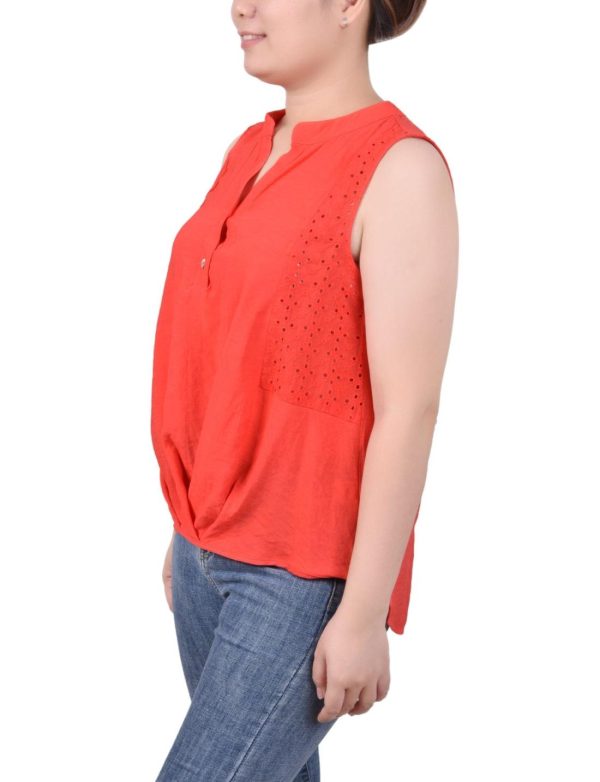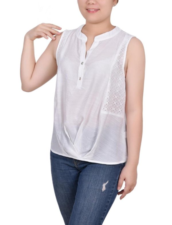 You’ll be so cool and comfortable in this eyelet detail slubbed top from NY Collection. The waist is pleated at the front hemline.